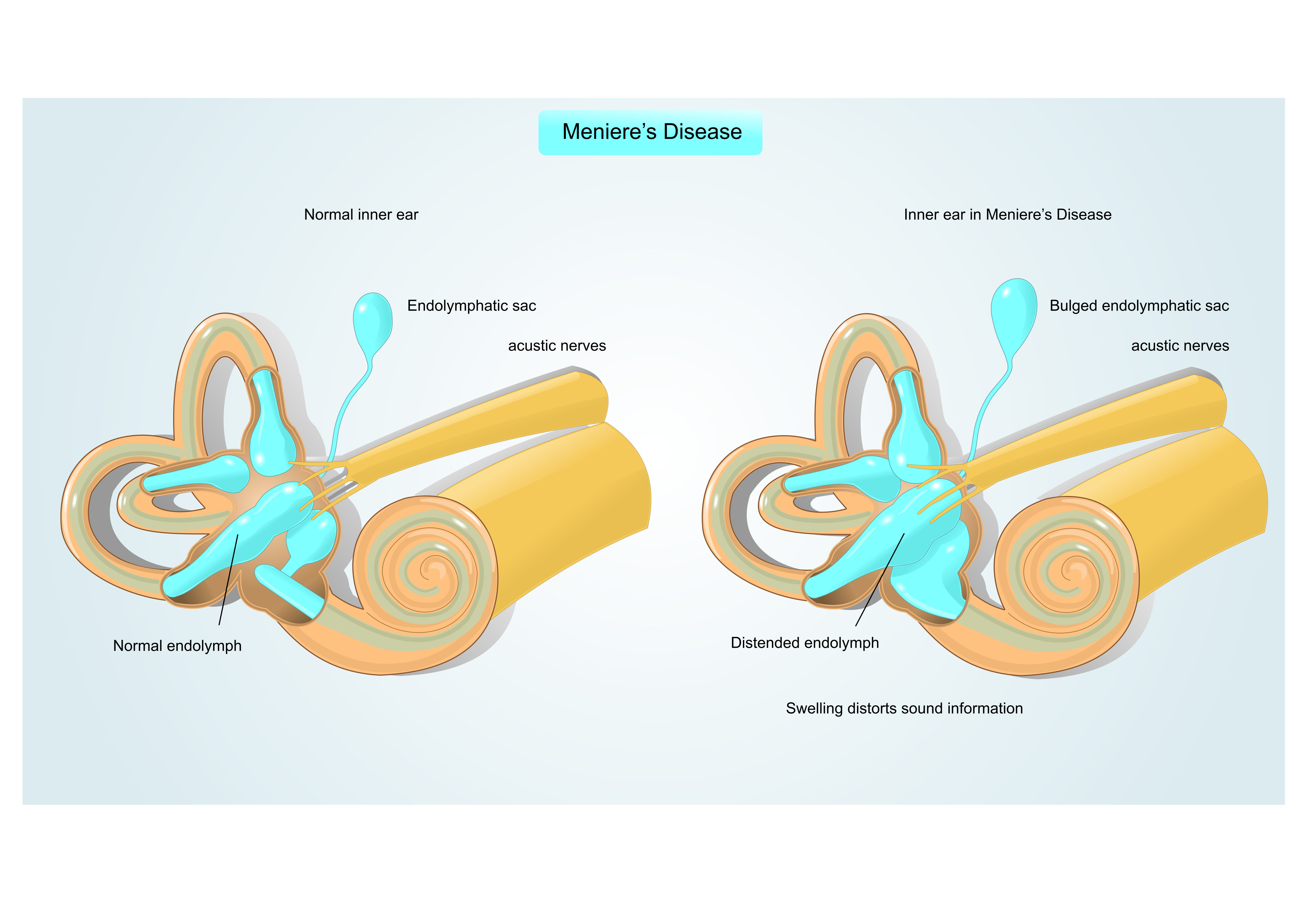 Если вначале заболевания нарушается восприятие только звуков низкой частоты, то постепенно утрачивается слышимость всего диапазона звуковых колебаний. Каждый новый приступ приводит к еще большему нарушению слуха. В конце концов, наступает глухота. Обычно с утратой слуха приступы головокружения исчезают.