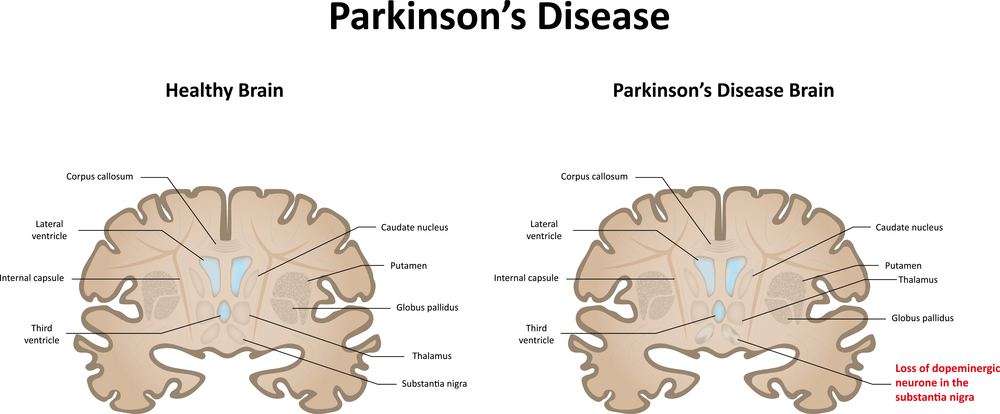 Процесс дегенерации происходит в так называемой черной субстанции – группе клеток головного мозга, относящейся к подкорковым образованиям. Разрушение этих клеток приводит к снижению содержания дофамина. Дофамин – это вещество, с помощью которого осуществляется передача информации между подкорковыми образованиями о программируемом движении. Т. е. все двигательные акты как бы планируются в коре головного мозга, а реализуются с помощью подкорковых образований.