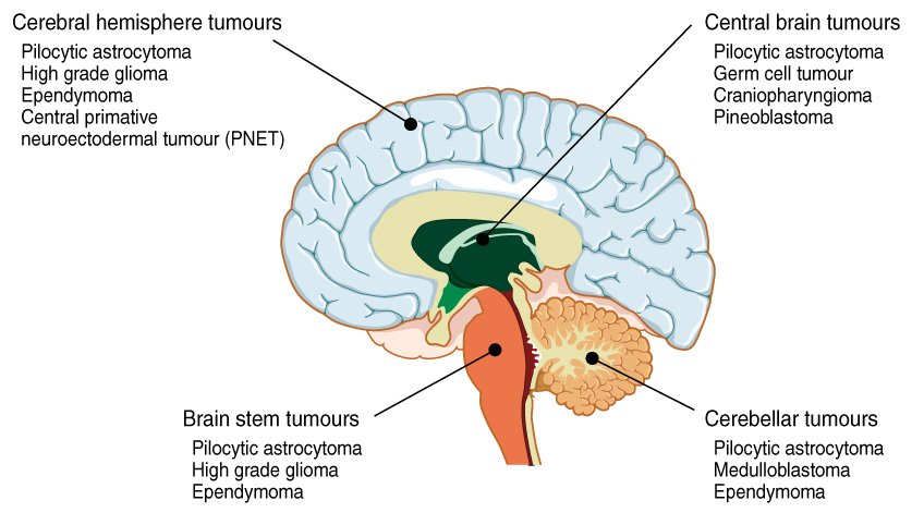 По гистологическому строению опухоли мозжечка также весьма разнообразны (известно более 100 видов). Однако наиболее часто встречающимися являются глиомы мозжечка (медуллобластомы и астроцитомы) и метастазы рака.